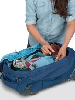 New patterning optimizes interior space, and redesigned pack access which opens from the side allows for greater visibility to contents. Updated internal compression straps secure clothing to prevent wrinkling, and wide-mouth liquid pocket speeds up trips through security.